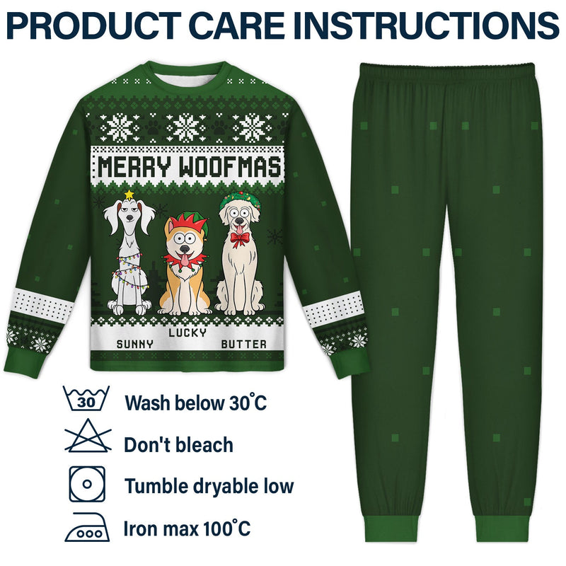 Feliz Navidog Merry Woofmas Funny Cartoon Dogs - Christmas Gift For Dog Lovers - Personalized Unisex Pajamas Set