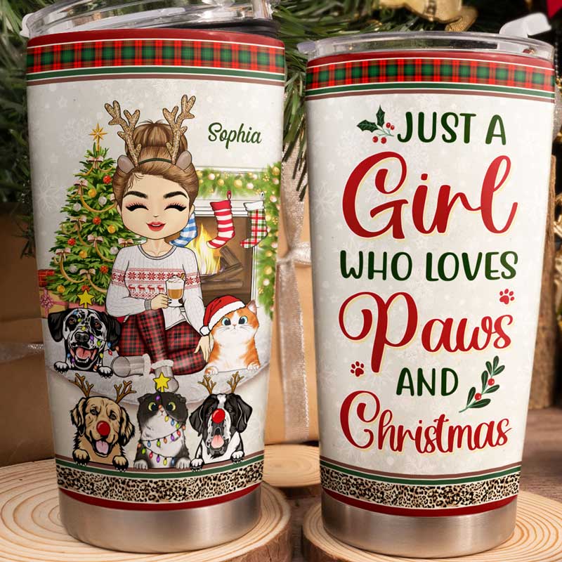 Just A Girl Boy Who Loves Dogs Cats And Christmas - Christmas Gift For Pet Lovers - Personalized Custom Tumbler