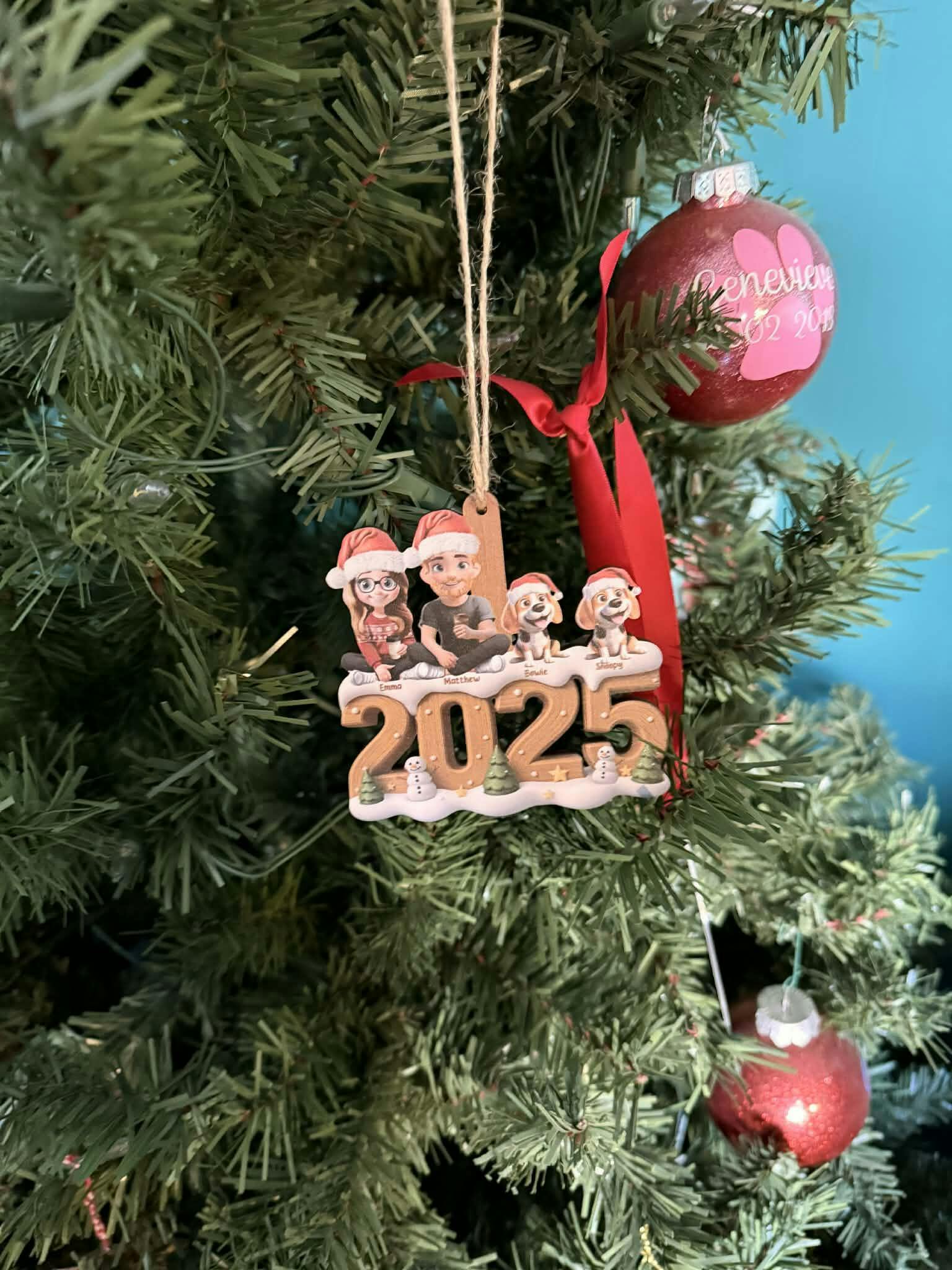 3D Effect Christmas Family And Dog Cat - Personalized Custom Shaped Wooden Ornament