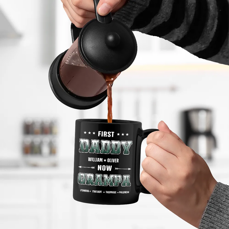 Introducing our "First Dad Now Papa Fir Forest" Personalized Black Mug - a heartwarming tribute to the special men in our lives. Crafted to celebrate fathers, uncles, and grandpas, this mug is more than just a vessel for beverages; it's a personalized symbol of love and appreciation suitable for any occasion.