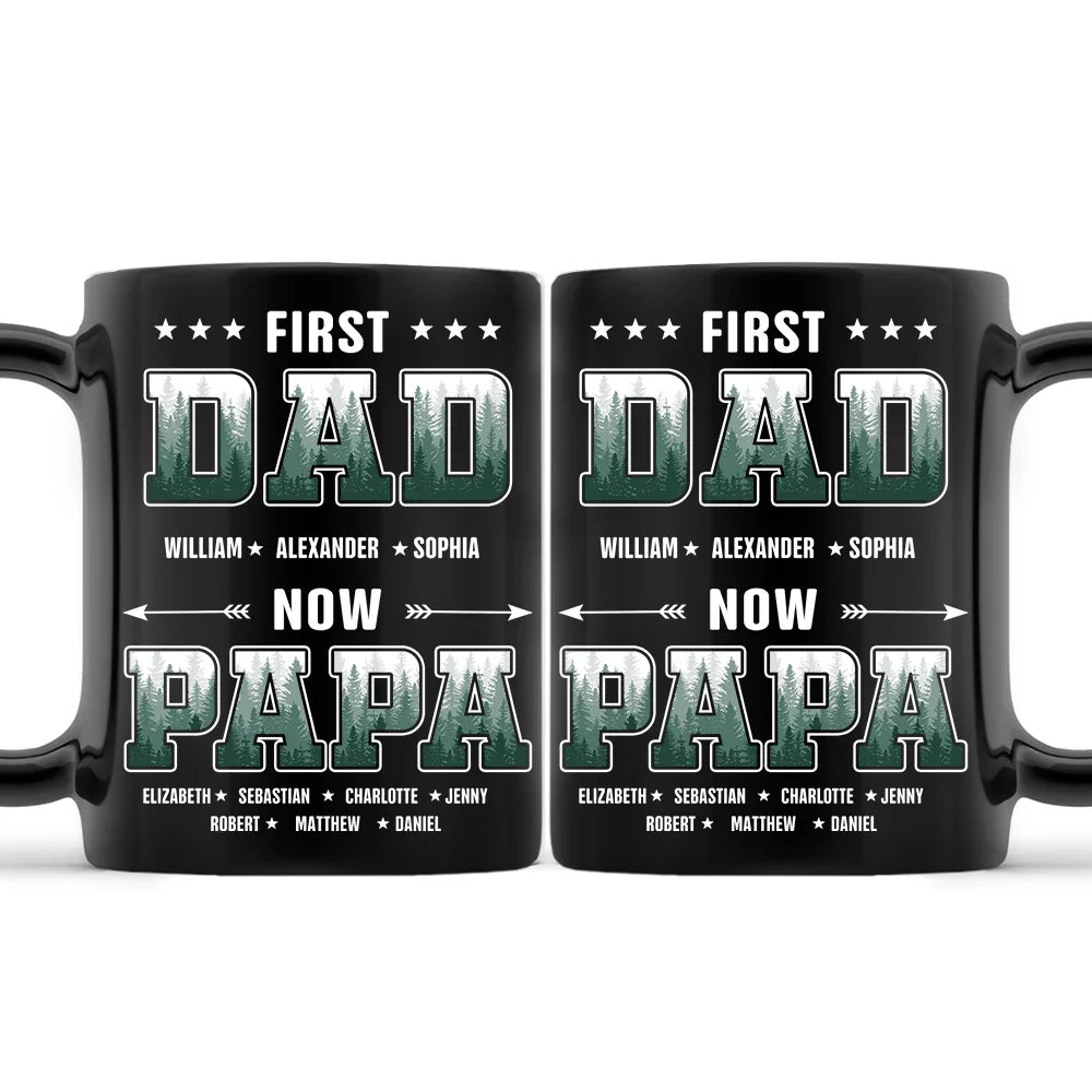 First Dad Now Papa Fir Forest - Personalized Black Mug