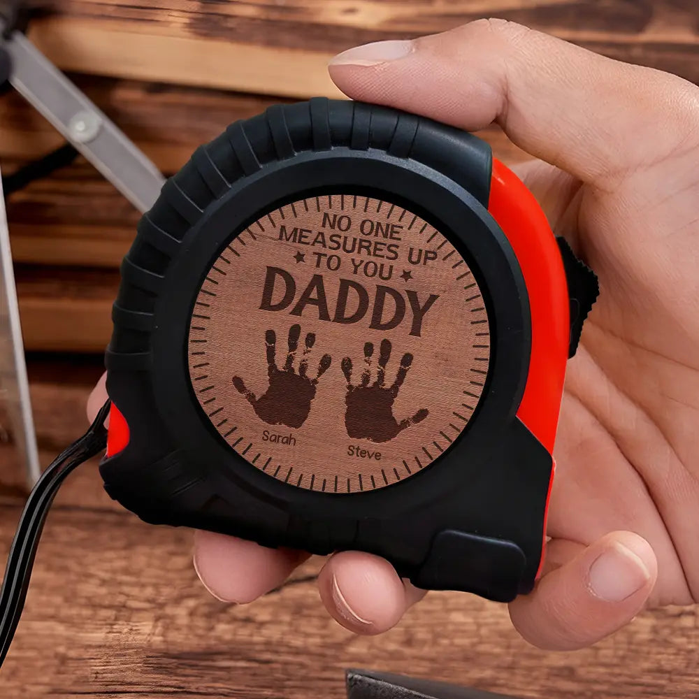 Celebrate the man who builds your world with the No One Measures Up To You Dad - Personalized Tape Measure. This awesome gift for dad, grandpa, or husband is perfect for Father’s Day, Birthday, Christmas, or Thanksgiving. A fun and meaningful tool that brings a smile with every measurement.