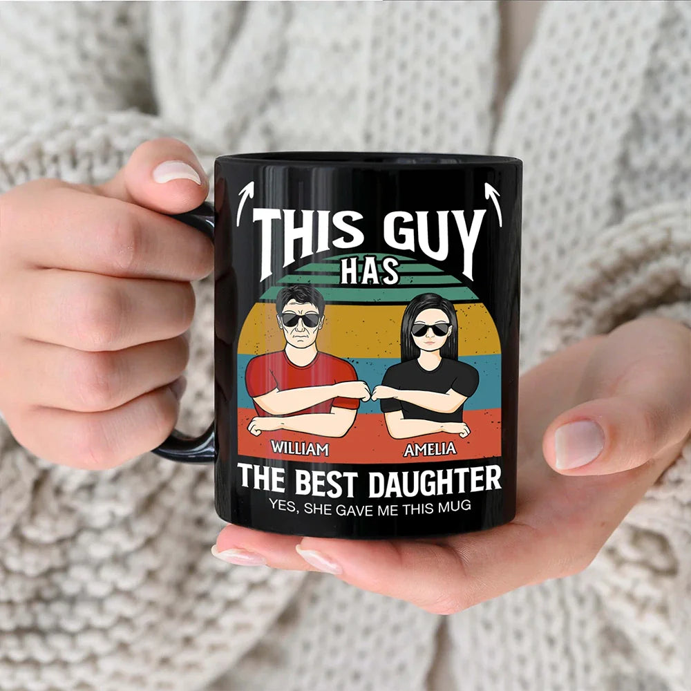 Make Dad Laugh with the This Guy Has The Best Daughter Son - Personalized Black Mug! This cool, hilarious gag mug is the perfect way to remind him just how lucky he is to have an amazing son or daughter like you. Whether it’s for Father’s Day, Christmas, Thanksgiving, a birthday, or just because, this unique gift for Dad is sure to bring laughter and joy every time he takes a sip.