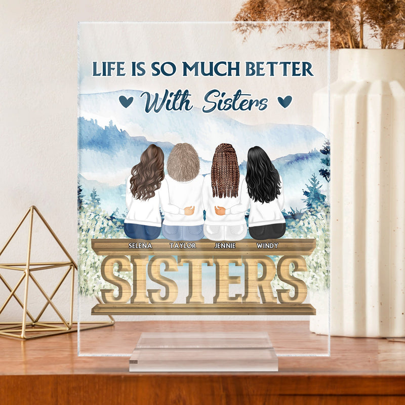 Sisters Forever Never Apart - Gift For Sisters And Best Friends - Personalized Custom Vertical Rectangle Acrylic Plaque