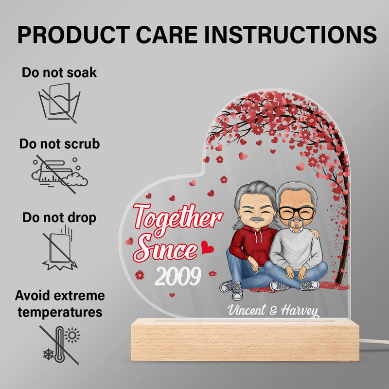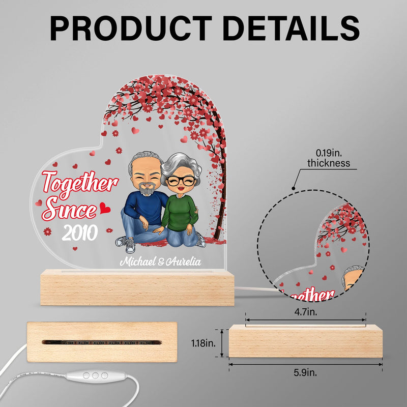 Together Since Couple - Anniversary, Birthday Gift For Spouse, Husband, Wife, Boyfriend, Girlfriend - Personalized Custom 3D Led Light Wooden Base