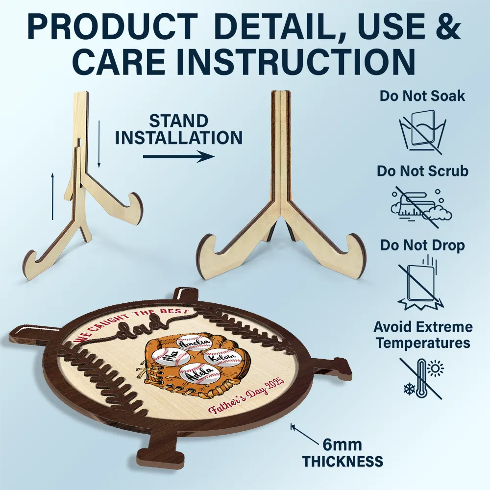 We Caught The Best Dad - Personalized 2-Layered Wooden Plaque With Stand