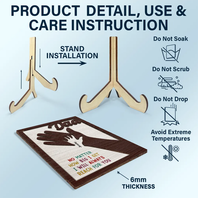 Crafted with care and attention to detail, this plaque features a beautiful hand design and can be customized with names to make it truly personal. It's a meaningful and sentimental piece that will touch the heart of any father, grandfather, uncle, or brother, reminding them of the love and memories you hold together. Perfect for any occasion, this thoughtful plaque is an unforgettable gift for Father's Day, birthdays, anniversaries, or just to show your appreciation.