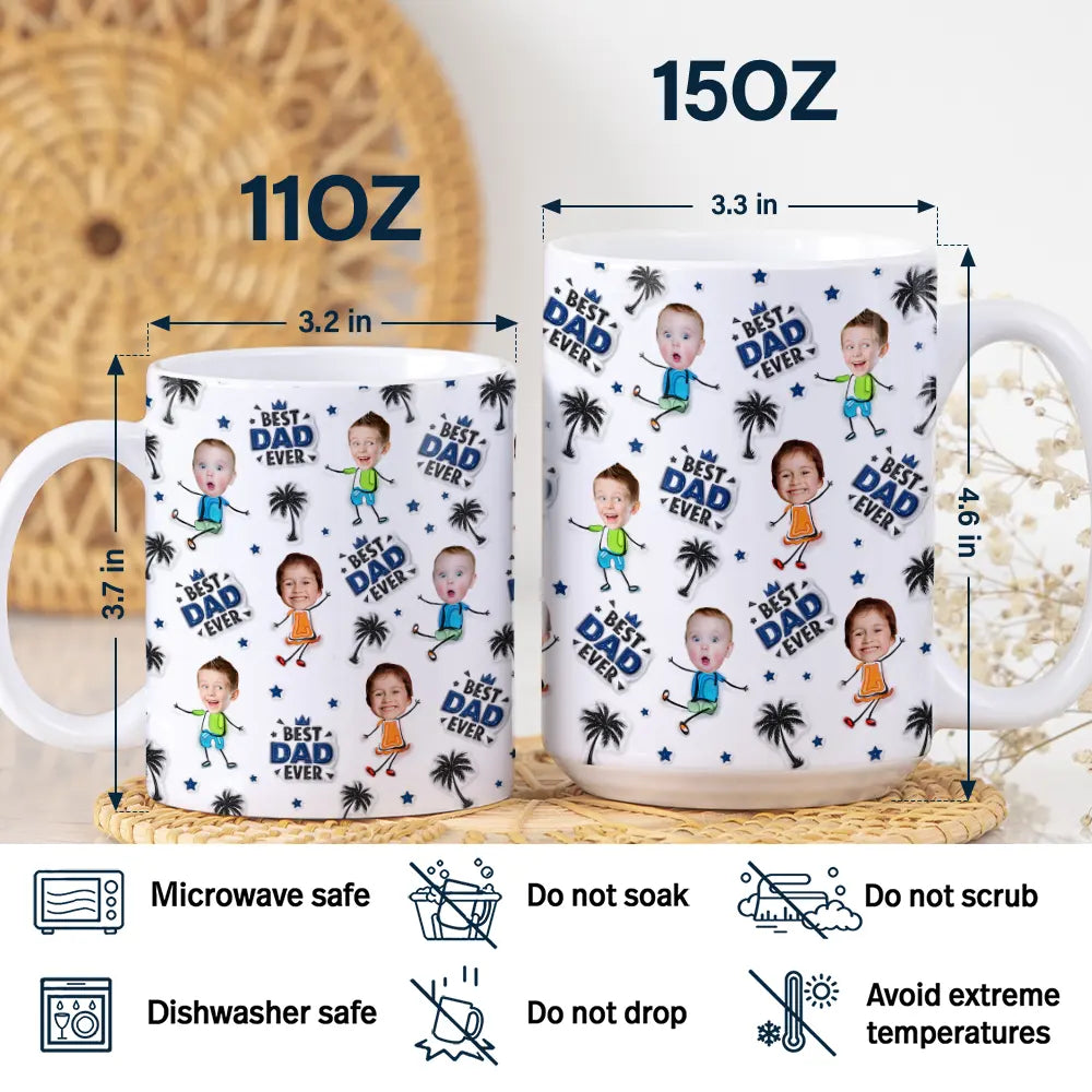 Custom Photo Best Dad Grandpa Ever - 3D Inflated Effect Printed, Personalized White Edge-to-Edge Mug