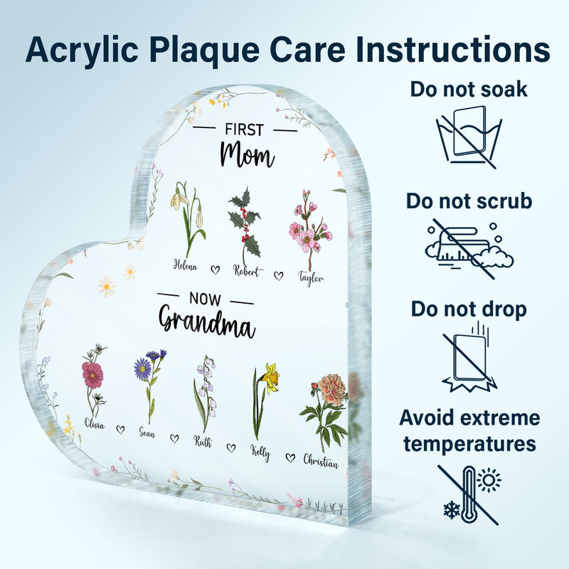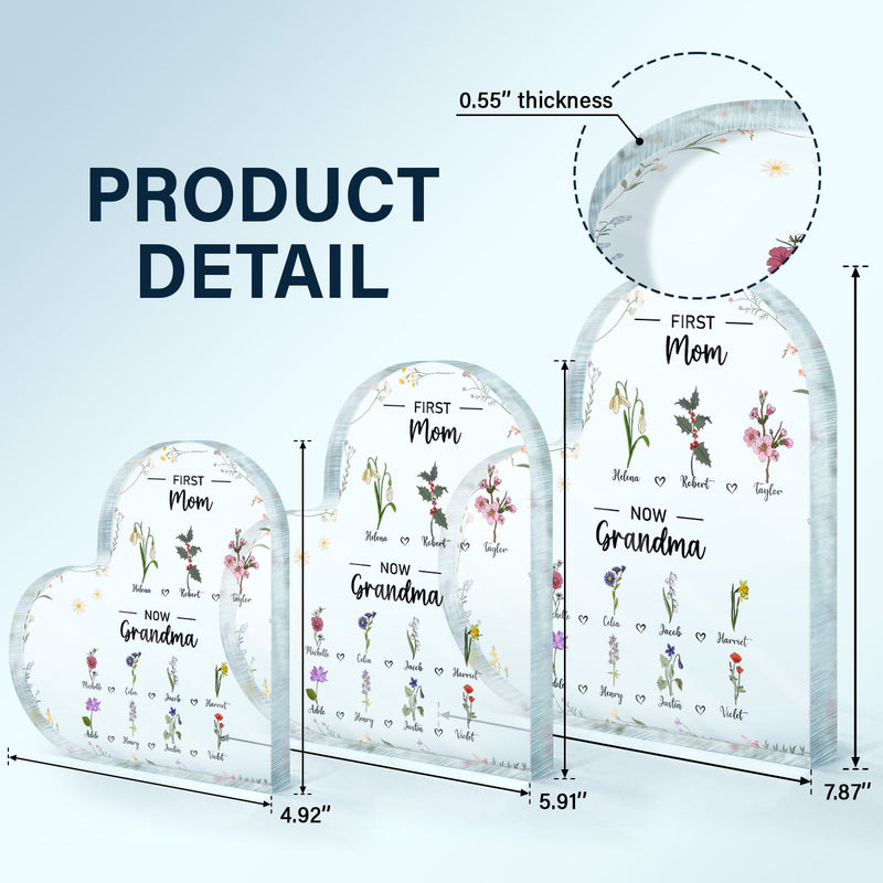 First Mom Now Grandma - Gift For Mom - Personalized Heart Shaped Acrylic Plaque