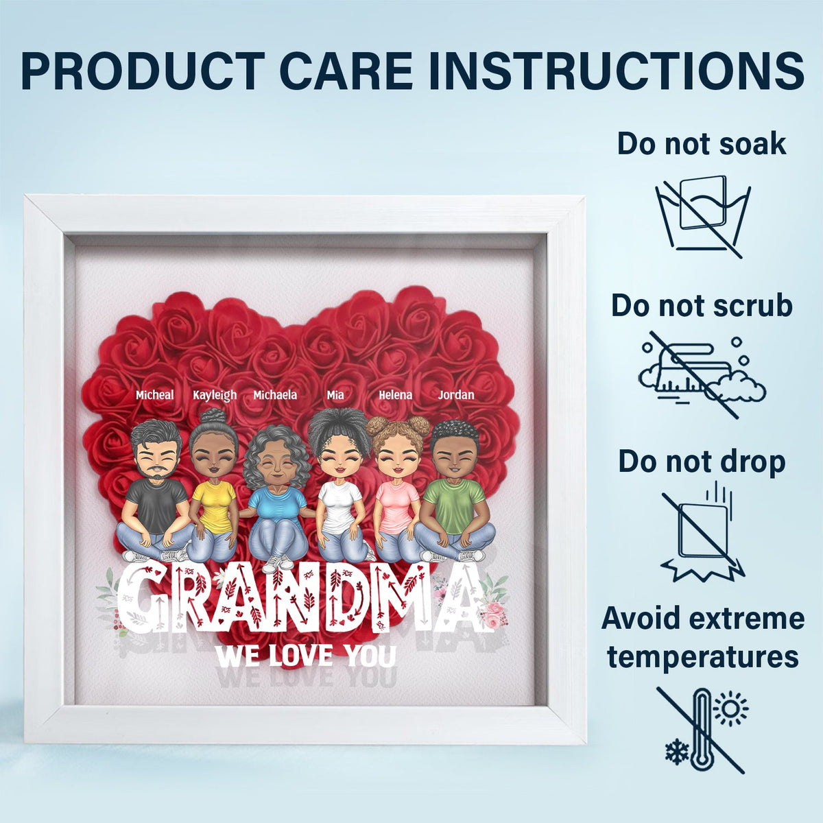 Mom Grandma We Love You - Loving Gift For Mother, Grandmother - Personalized Flower Shadow Box