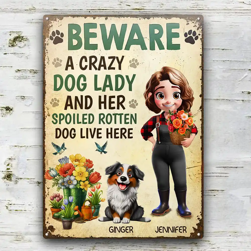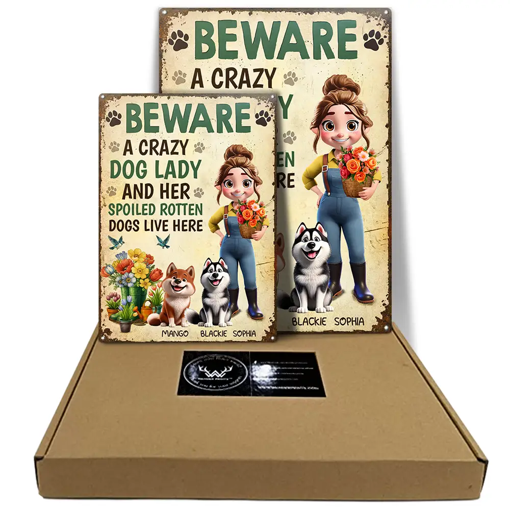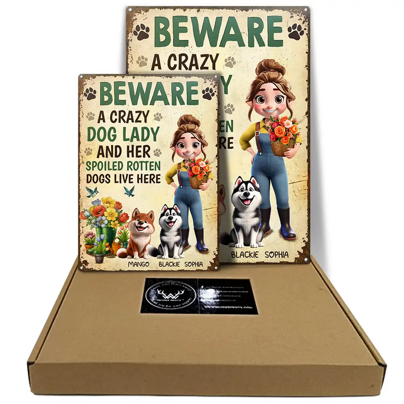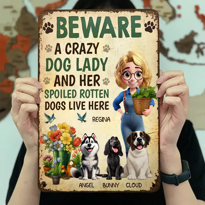 A Crazy Dog Lady And Her Dogs Live Here - Personalized Classic Metal Signs