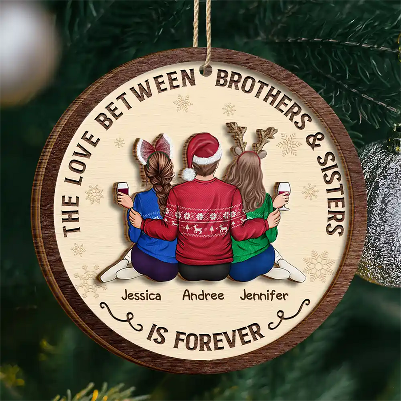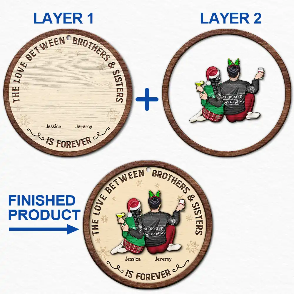 The Love Between Brothers And Sisters Is Forever - Personalized 2-Layered Wooden Ornament