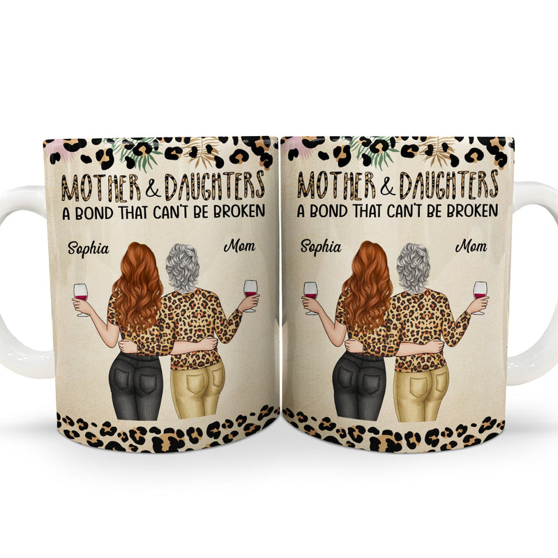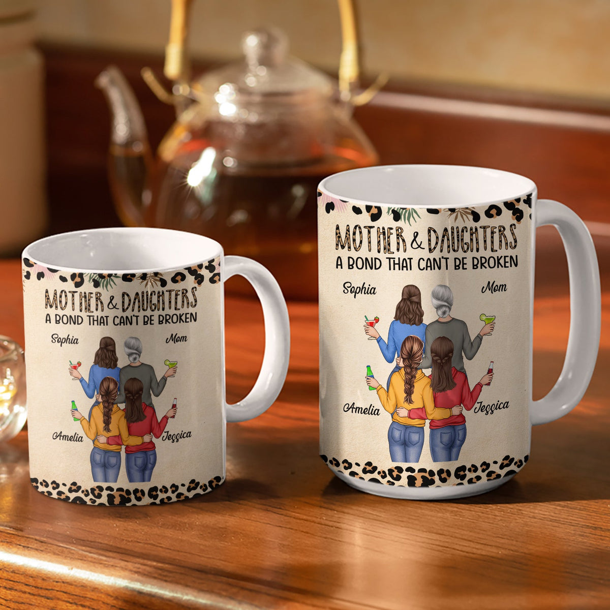 Mother & Daughters A Bond That Can't Be Broken - Gift For Mom, Mother, Grandma - Personalized White Edge-to-Edge Mug
