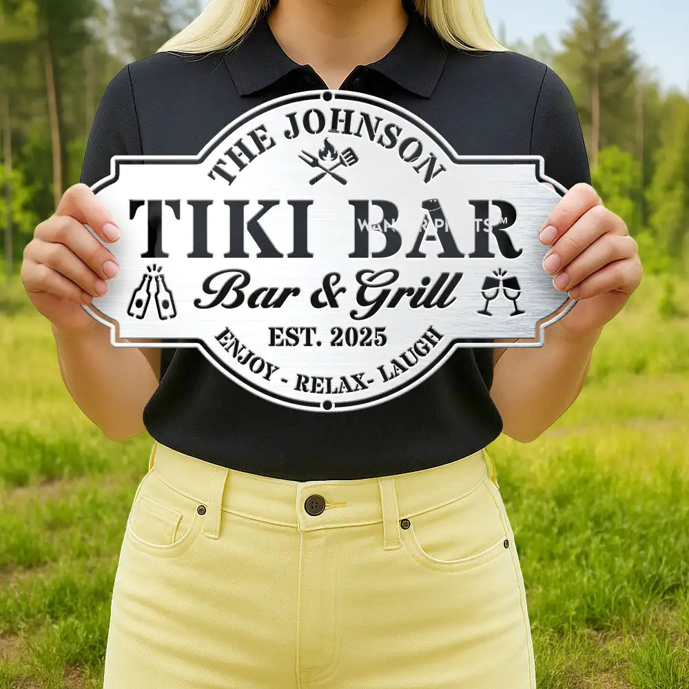 Poolside Bar & Grill - Personalized Cutout Metal Sign