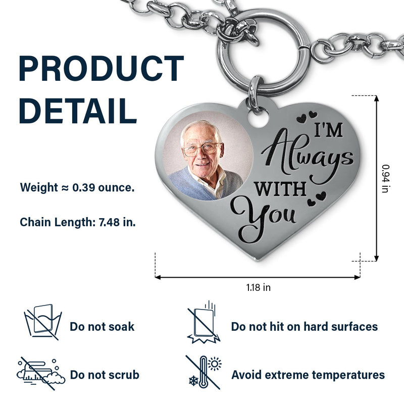 Custom Photo I'm Always With You - Memorial Gift For Family, Siblings, Friends, Dog Lovers, Cat Lovers - Personalized Heart Bracelet