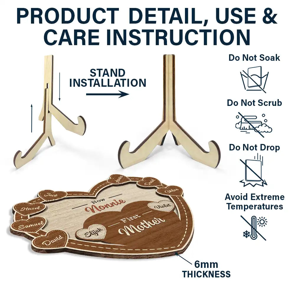 First Mom Now Grandma Sweethearts - Personalized 2-Layered Wooden Plaque With Stand