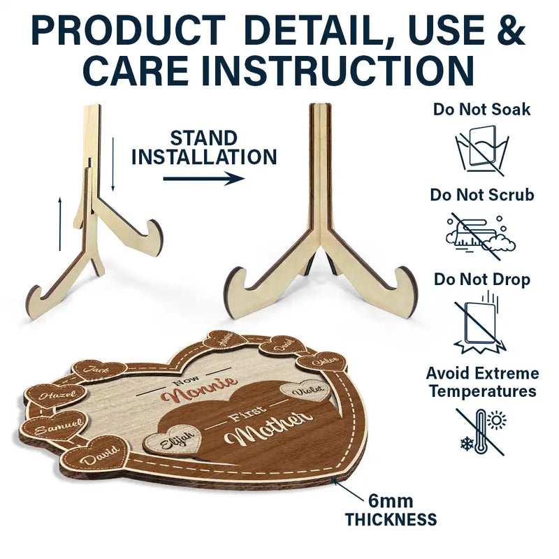 The First Mom Now Grandma Sweethearts - Personalized 2-Layered Wooden Plaque With Stand is a heartfelt tribute to the beautiful journey from motherhood to becoming a cherished grandmother. This unique and sentimental plaque is a meaningful way to celebrate the love and devotion that grandmothers bring to every family. Personalize it with names or a special message to create an unforgettable keepsake that will be treasured forever.