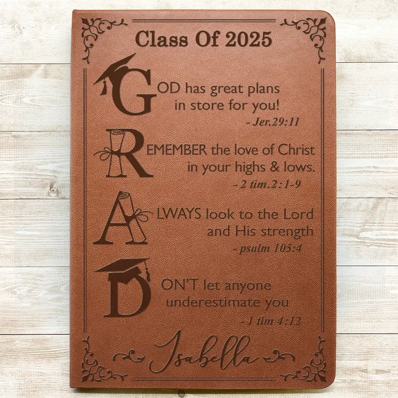 Graduation Motivation God Has Great Plans For You - Personalized Leather Journal