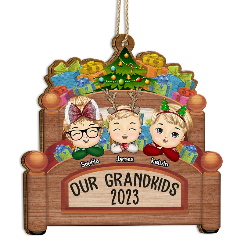Grandkids In Bed - Christmas, Loving Gift For Grandpa, Grandma, Grandparents - Personalized Custom Shaped Wooden Ornament