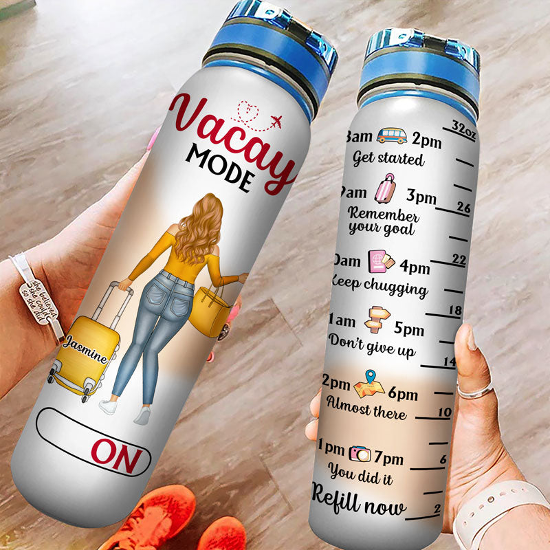 Drink Well Travel Often - Gift For Travel Lovers - Personalized Custom Water Tracker Bottle