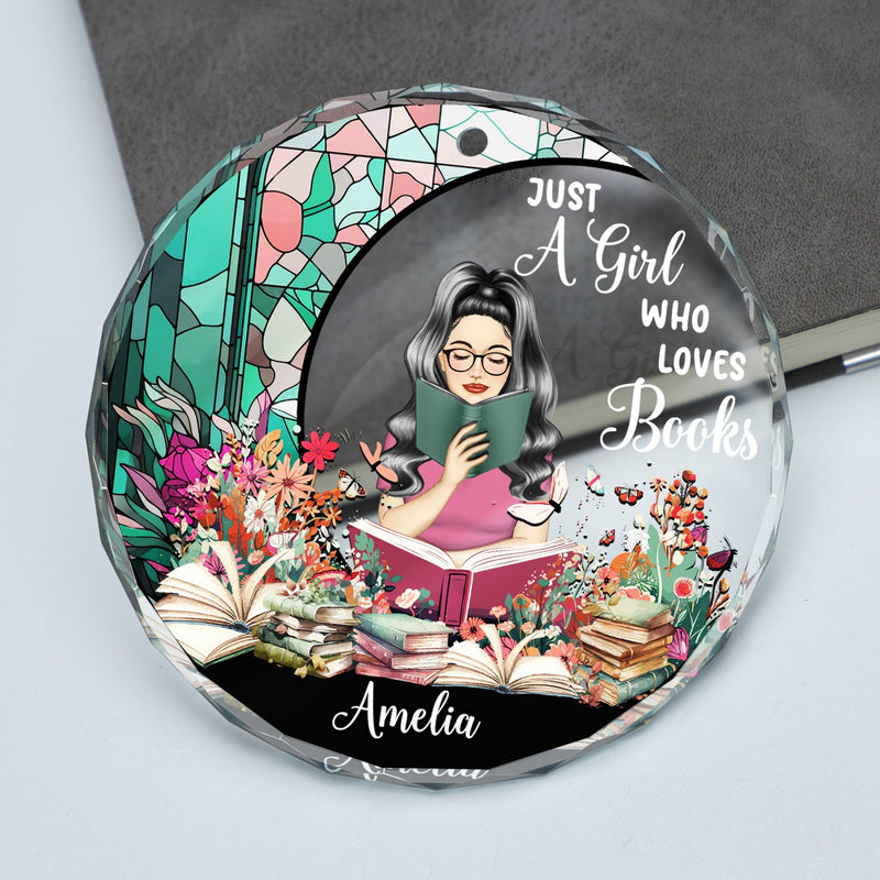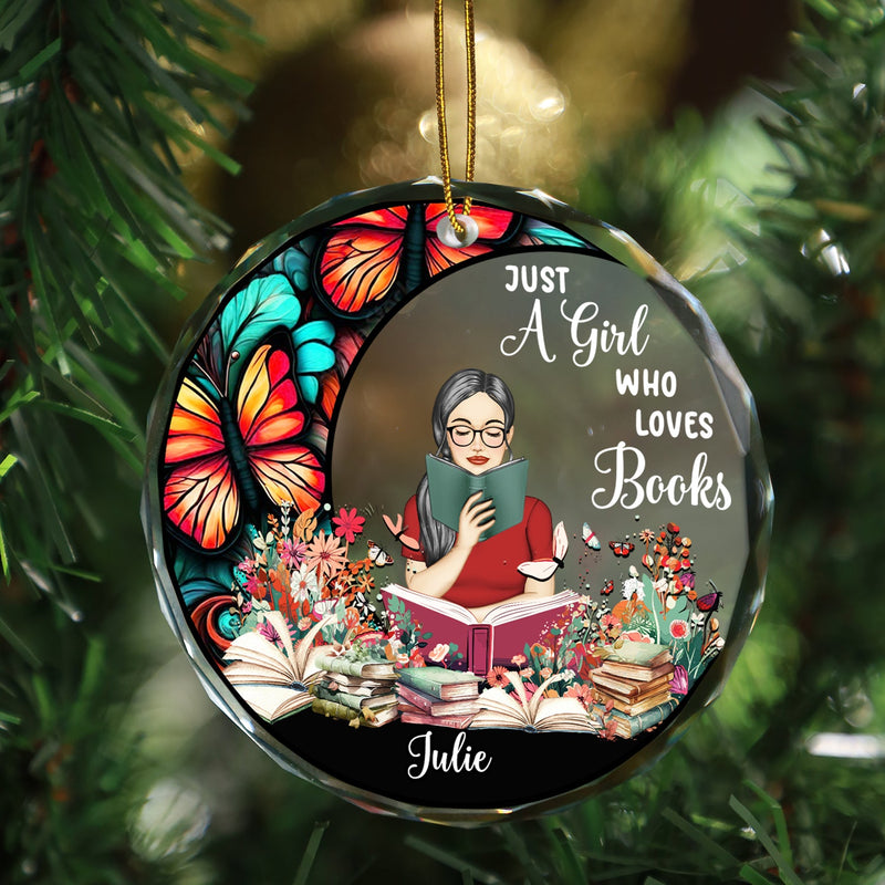 Reading Girl Who Loves Books - Personalized Circle Glass Ornament
