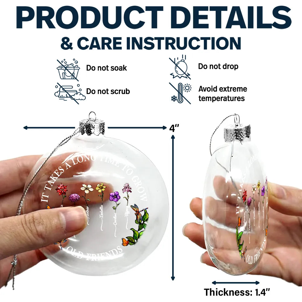Grow An Old Friend Birth Flower - Personalized Clear Flat Ball Ornament