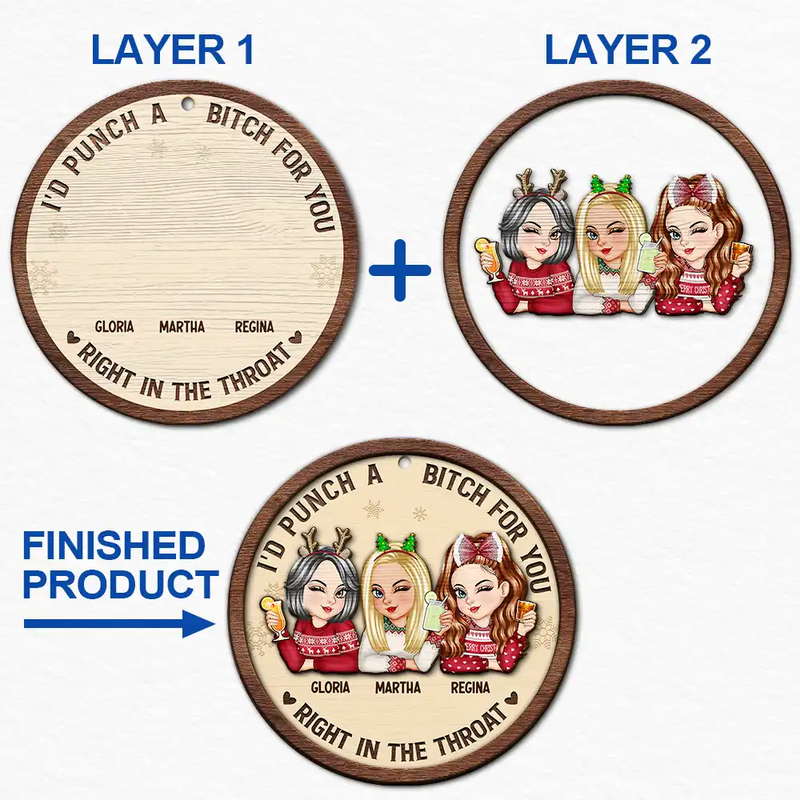 Right In The Throat Besties - Personalized 2-Layered Wooden Ornament