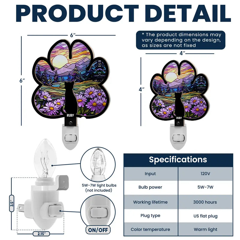 Paw Shaped Light With Dog Cat - Personalized Plug-in Night Light