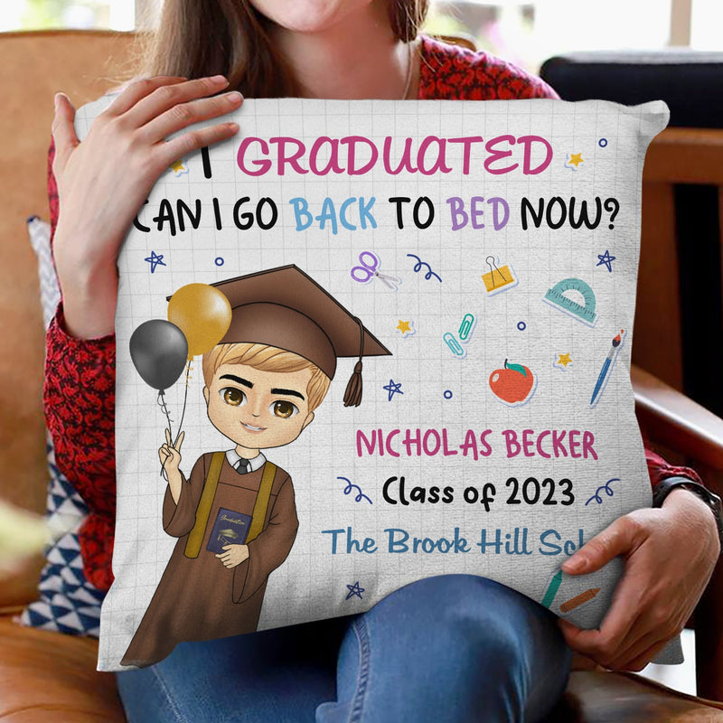 I Graduated Can I Go Back To Bed Now - Graduation Gift, Gift For Yourself - Personalized Pillow