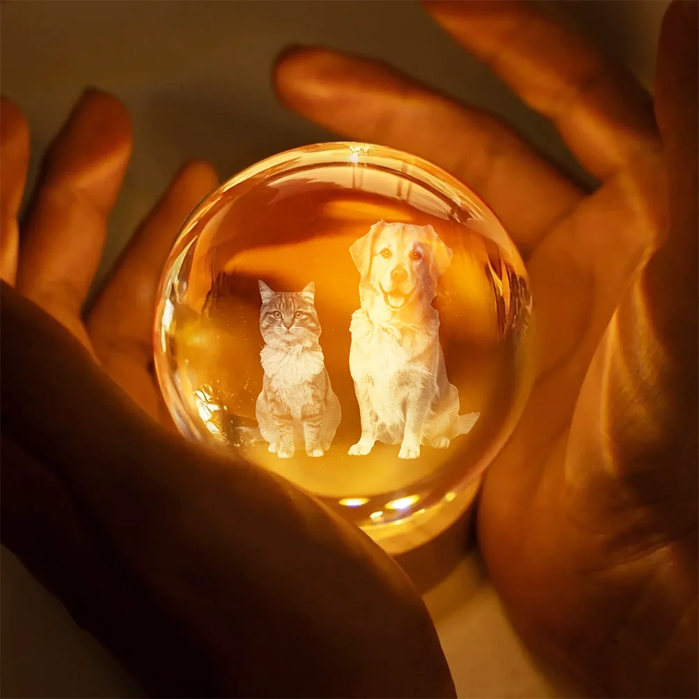 Expertly crafted, this crystal globe lamp displays your custom photo in a stunning 3D design. Its soft glow creates a cozy and joyful atmosphere, making it perfect for a bedroom, living room, or office desk.