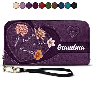 Grandma's Little Hearts Birth Month Flowers - Personalized Leather Long Wallet
