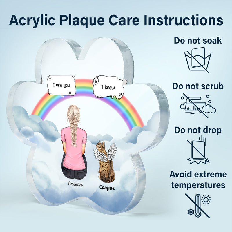 I Miss You - Memorial Gift For Pet Lovers, Dog Mom, Dog Dad, Cat Mom, Cat Dad - Personalized Paw Shaped Acrylic Plaque