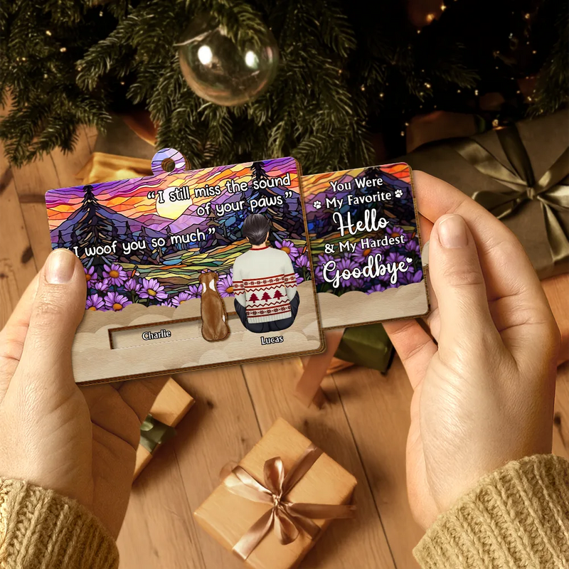 My Hardest Goodbye I Miss You Memorial Dog Cat - Personalized Wooden Slide Ornament