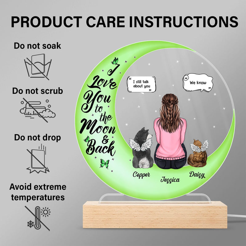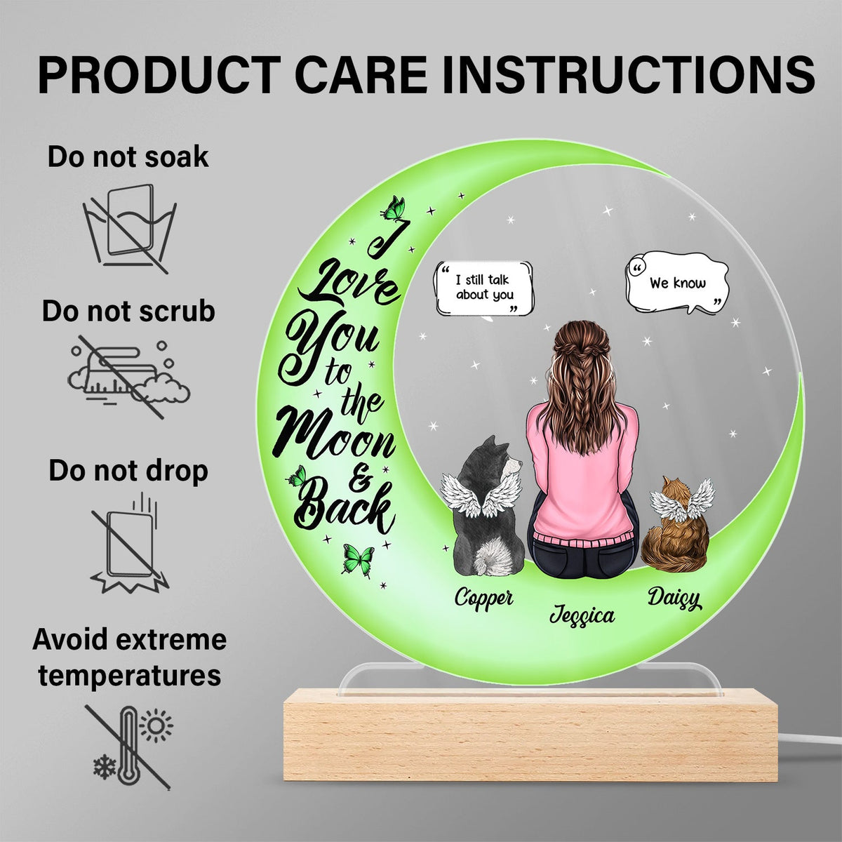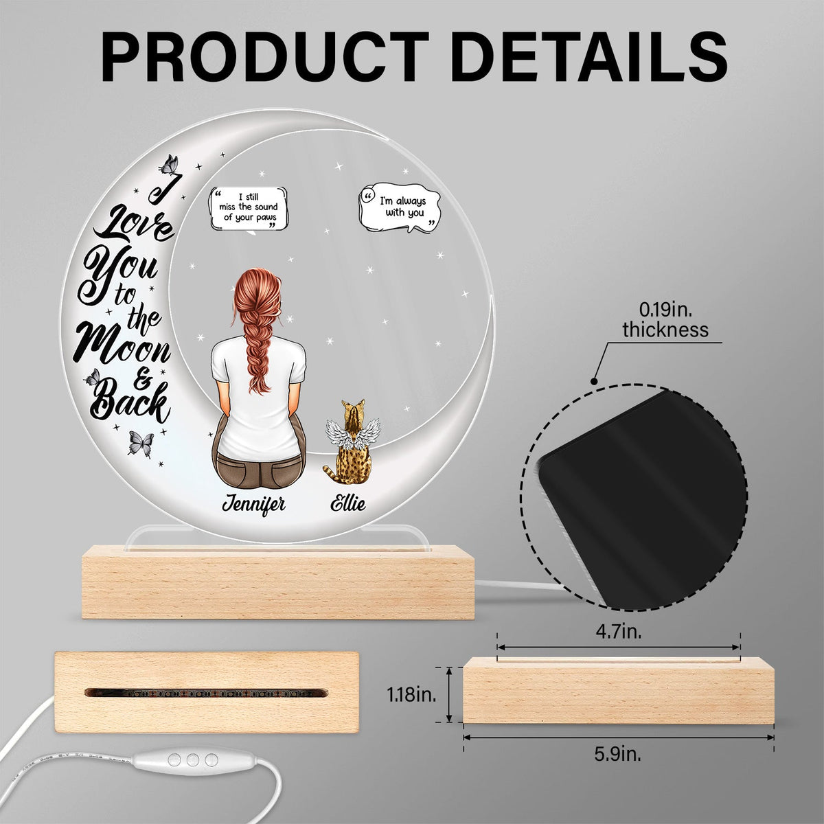 I Love You To The Moon And Back - Memorial Gift For Pet Lovers, Dog Mom, Dog Dad, Cat Mom, Cat Dad - Personalized 3D Led Light Wooden Base
