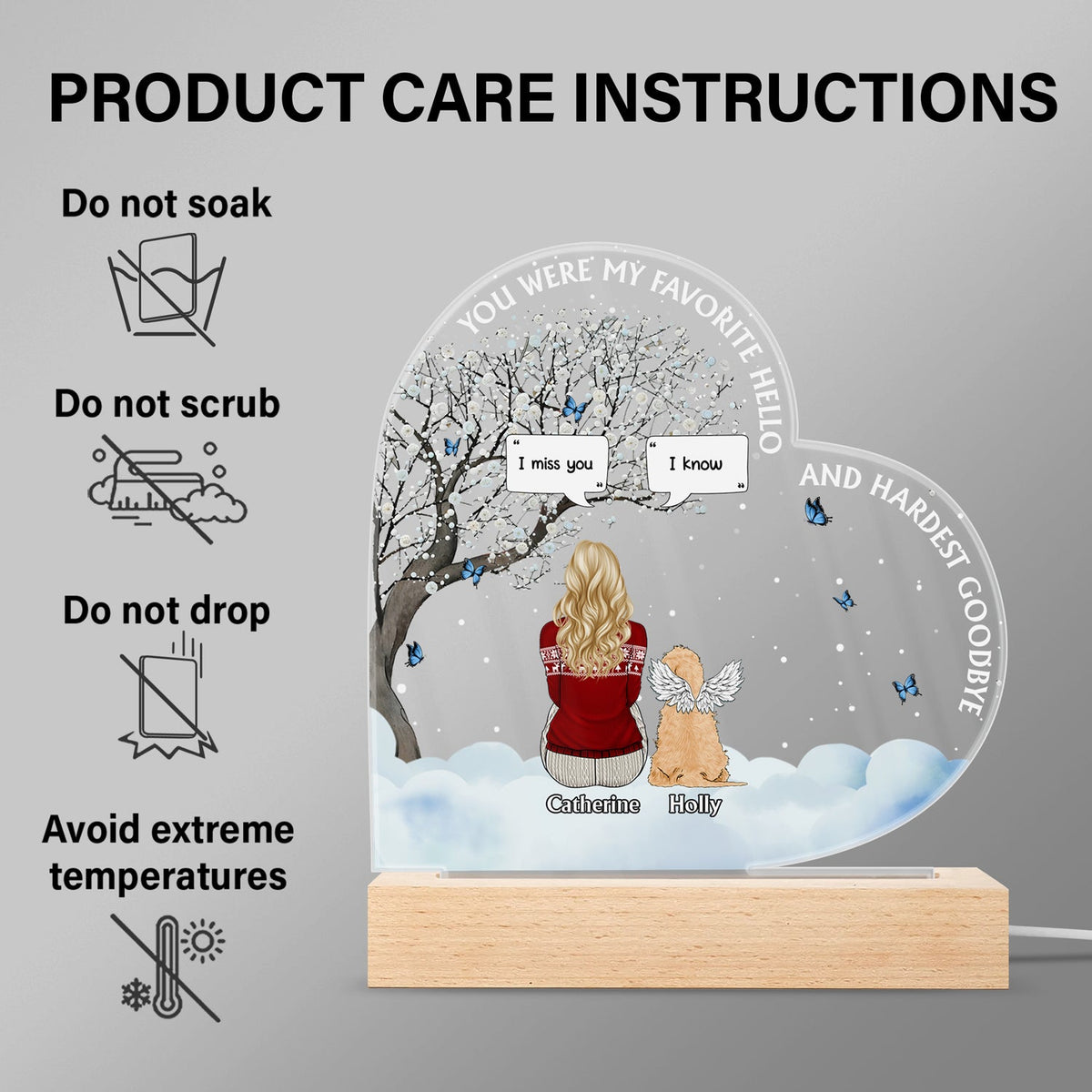 You Were My Favorite Hello And Hardest Goodbye - Memorial Gift For Pet Lovers - Personalized 3D Led Light Wooden Base