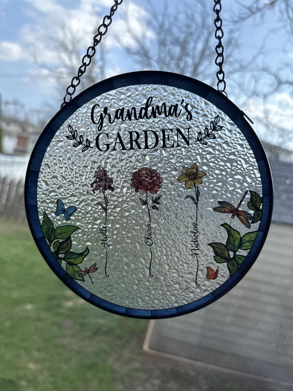 Birth Flower Grandma's Garden - Personalized Stained Glass Window Hanging Suncatcher