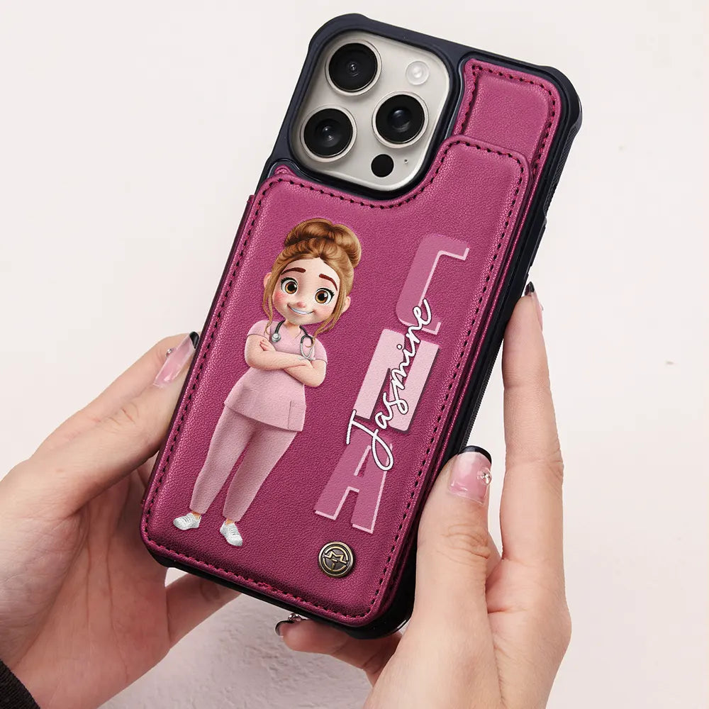 Job Title 3D Effect Nurse - Personalized Leather Flip Wallet Phone Case