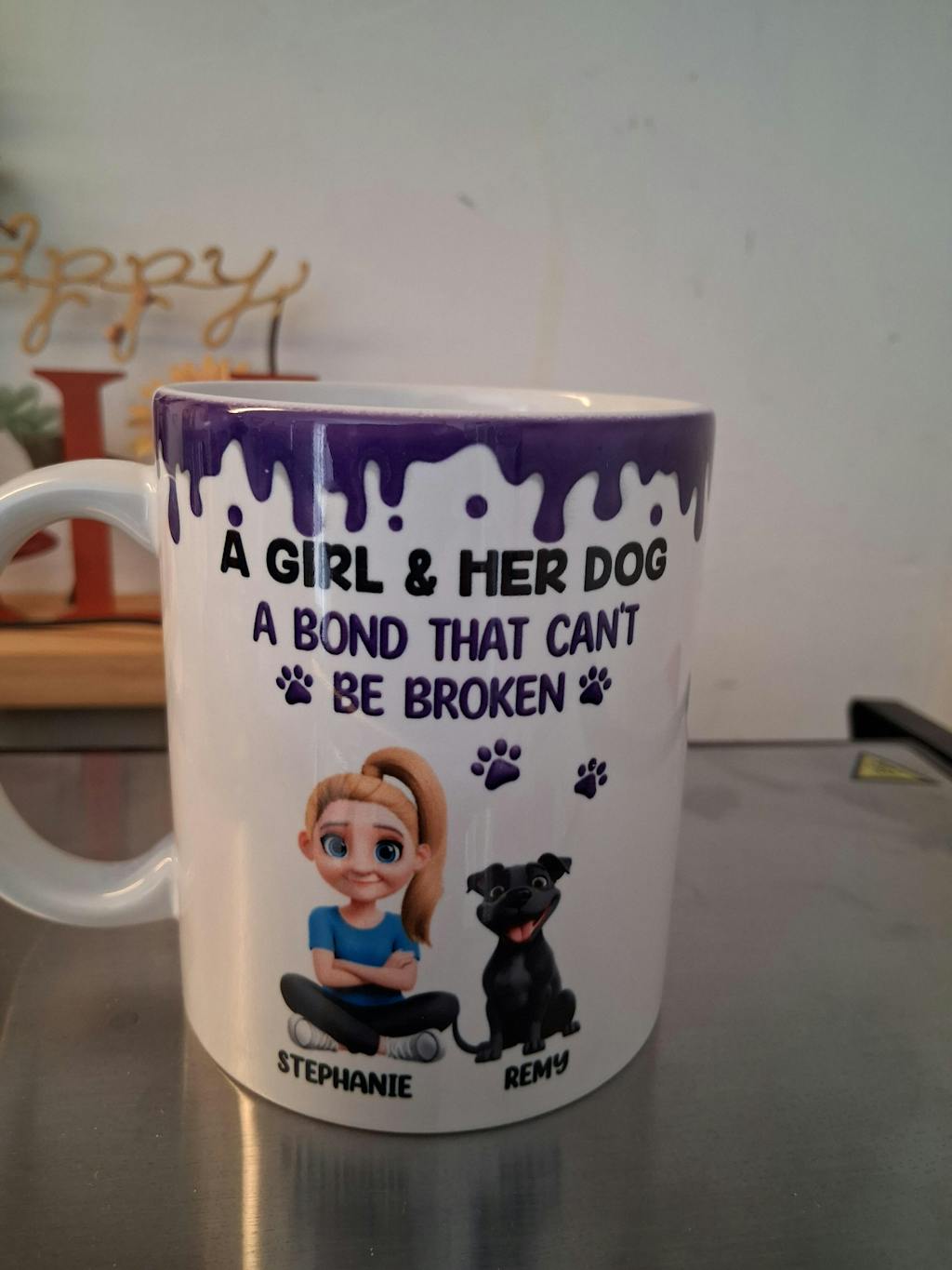 A Girl And Her Dog A Bond That Can't Be Broken - Personalized White Edge-to-Edge Mug
