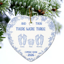 And Then There Were Toile Footprints Family - Personalized Heart Ceramic Ornament