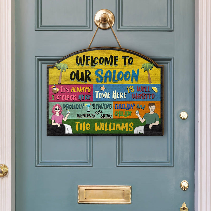 Couple Welcome Grilling Chilling - Home Decor For Patio, Pool, Hot Tub, Deck, Shaverbahn, Bar - Personalized Custom Shaped Wood Sign
