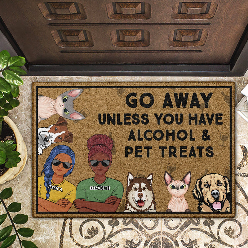 Go Away Unless You Have Alcohol And Dog Treats Cat Treats Pet Treats Couples - Gift For Dog Lovers & Cat Lovers - Personalized Custom Doormat