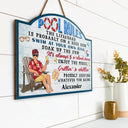 Pool Rules Swim At Your Own Risk Grilling - Home Decor, Backyard Decor, Gift For Her, Him, Family, Couples, Husband, Wife - Personalized Custom Shaped Wood Sign