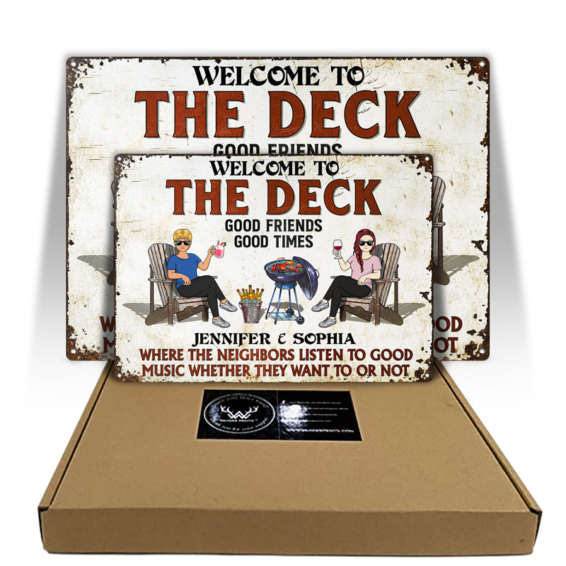 The Patio Grilling Listen To The Good Music Couple Husband Wife Pride - Backyard Sign - Personalized Custom Classic Metal Signs