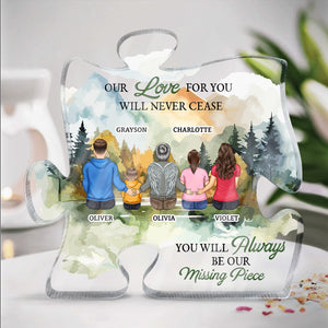 Our Love For You Will Never Cease - Memorial Gift For Family, Friend - Personalized Puzzle Shaped Acrylic Plaque
