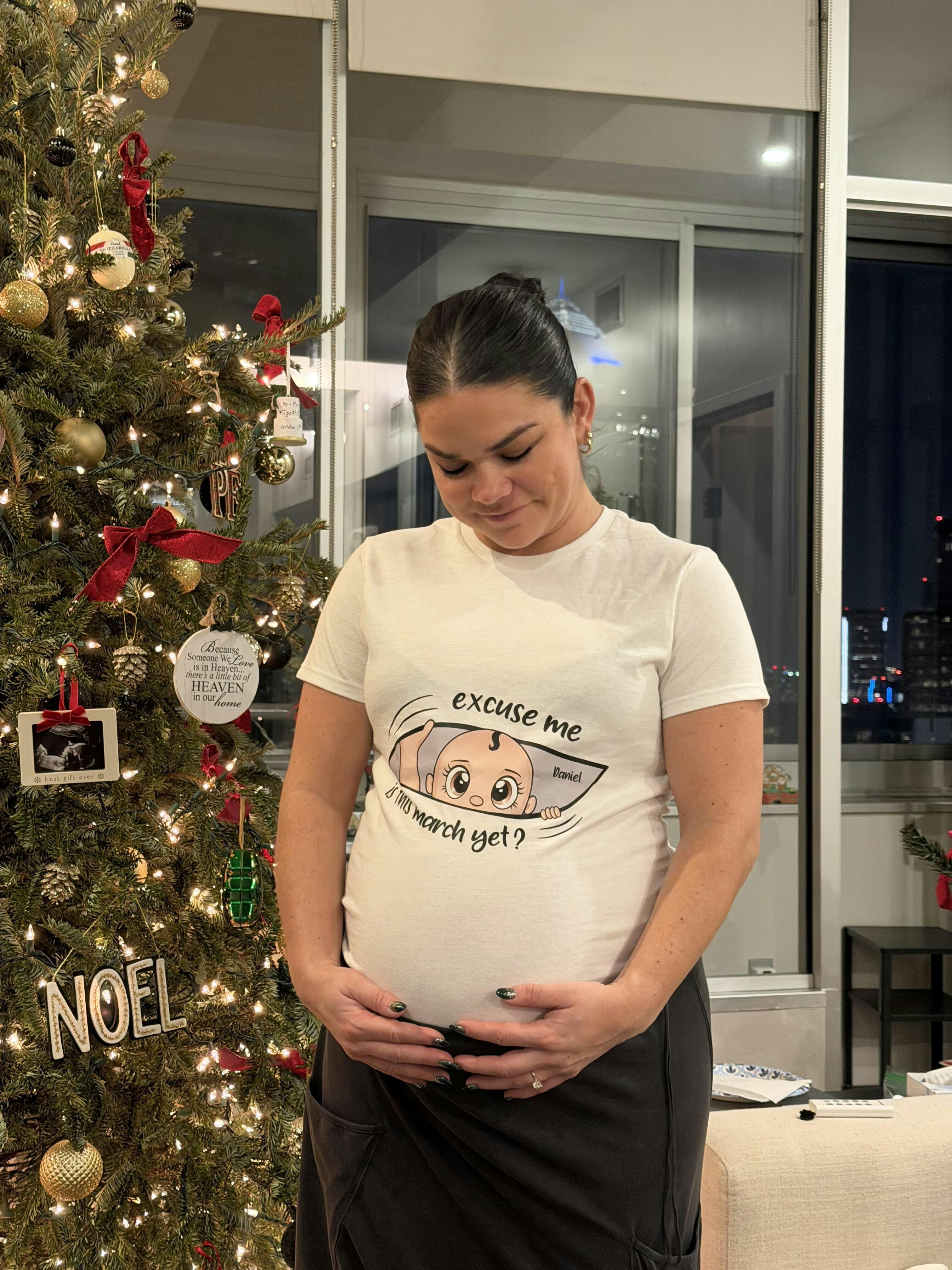 Excuse Me Is It Time Yet Pregnancy Announcement Expecting Mom Maternity - Personalized T Shirt
