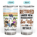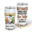 Retired Under New Management Couple - Retirement Gift - Personalized Custom Tumbler