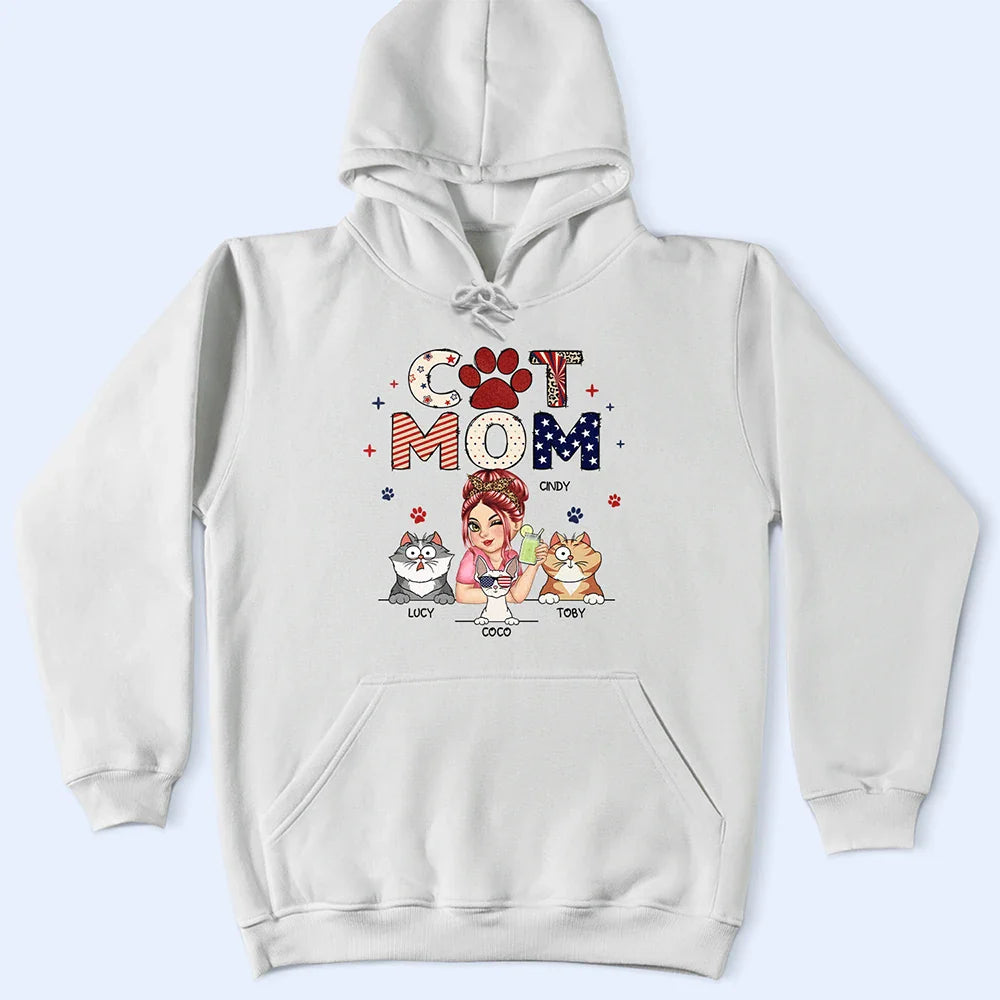 Cat Mom Stars And Stripes - Personalized T Shirt