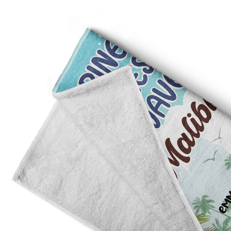 Happiness Comes In Waves - Bestie BFF Gift - Personalized Beach Towel