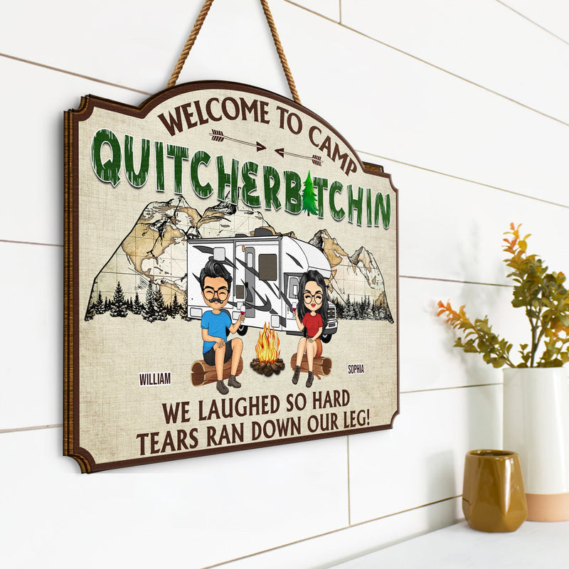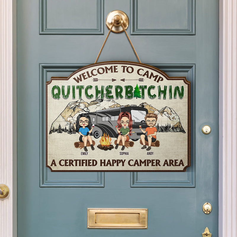 If You're Not A Happy Camper Take A Hike - Gift For Camping Lovers, Besties, BFF Best Friends, Siblings - Personalized Custom Shaped Wood Sign