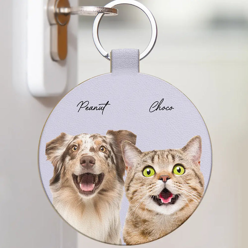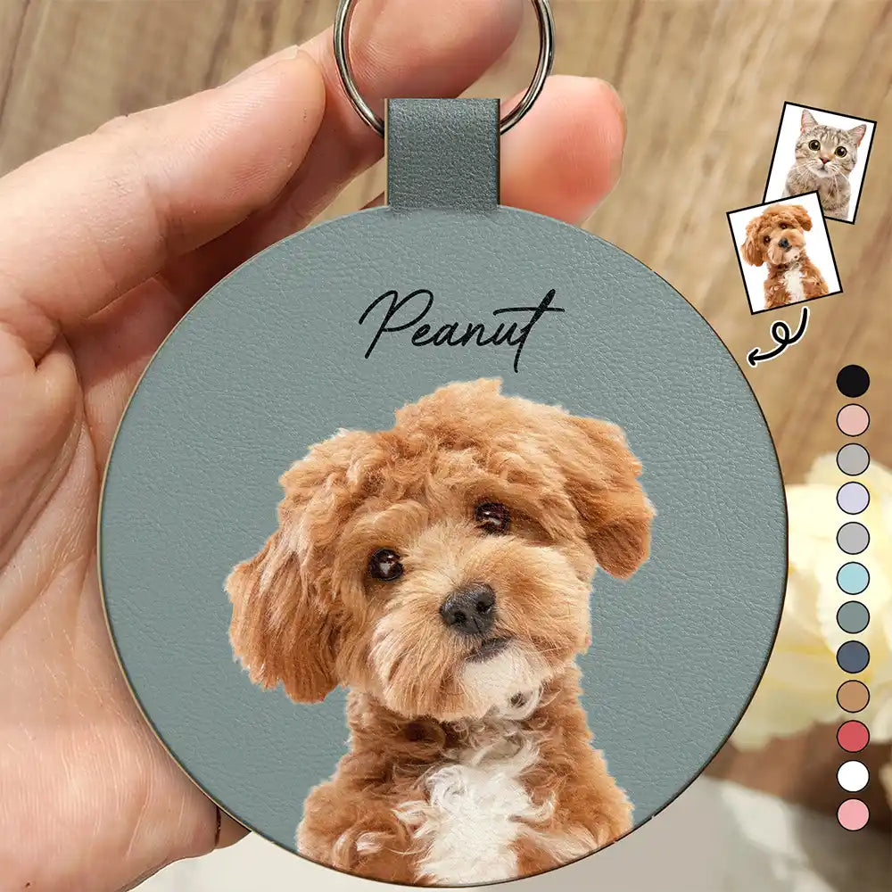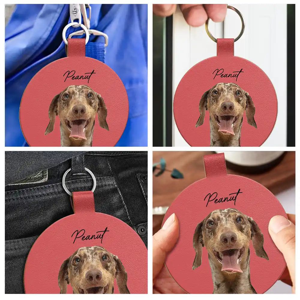 Custom Photo Your Dog Cat Pet - Personalized Custom Shaped Leather Keychain